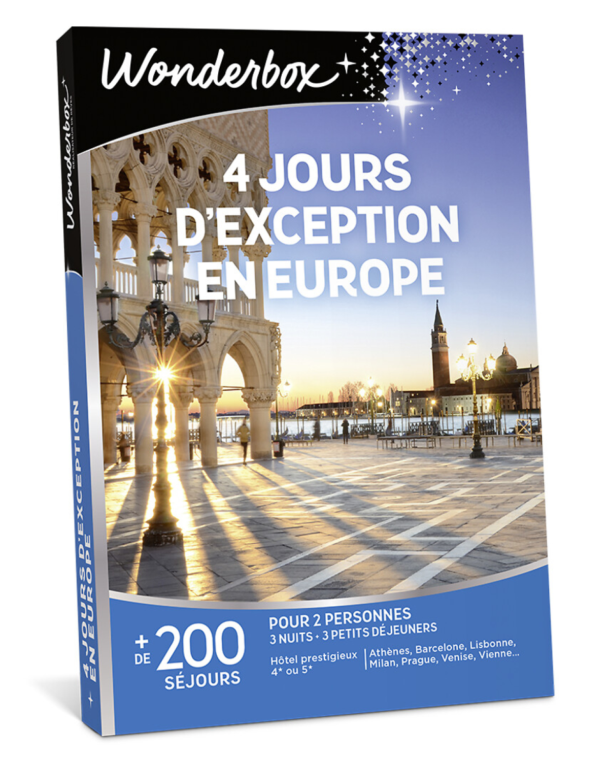 Un large choix de destinations inoubliables comme Barcelone, Vienne, Athènes, Milan, Lisbonne, Venise, Prague… Laissez-vous séduire par l’élégance de Florence, l’ambiance chaleureuse de Lisbonne ou encore les trésors historiques d’Athènes. Vous choisissez la ville, Wonderbox s’occupe du reste !